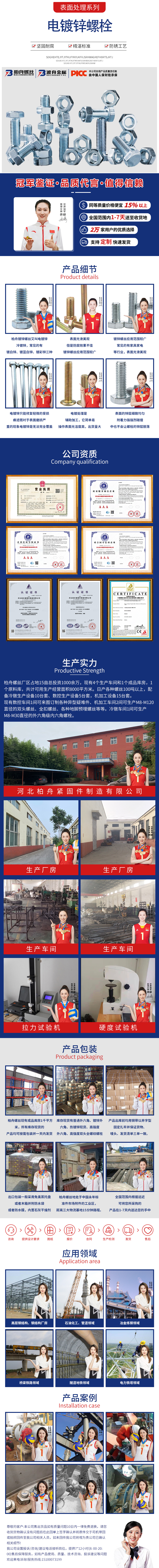 產(chǎn)品介紹:柏舟鍍鋅螺絲又叫電鍍鋅、冷鍍鋅,常見的有鍍白鋅、鍍藍白鋅、鍍彩鋅三種。表面光滑美觀,但是防腐效果不佳,需要注意的是10 9級以上的螺絲做電鍍鋅的時候很有可能產(chǎn)生清脆現(xiàn)象。鍍鋅螺絲應(yīng)用范圍較廣,常見的有家具家電等行業(yè)。