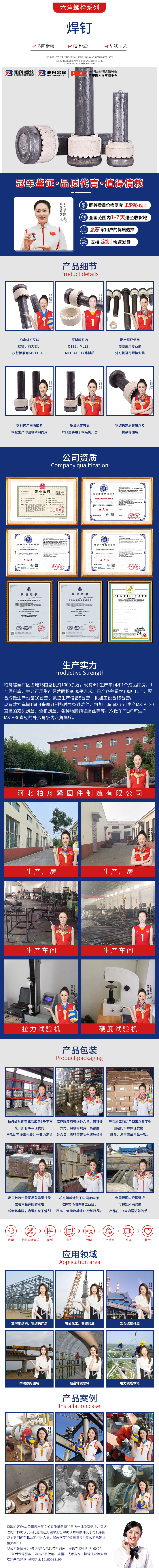產品介紹:柏舟焊釘又叫栓釘、剪力釘、執(zhí)行標準為GB-T10433、原材料可選Q195、ML15、ML15AL、LY等材質。配合磁環(huán)使用,需要采用專業(yè)的焊釘機進行焊接安裝。鋼材選用國內知名鋼企生產的圓鋼精制而成,質量穩(wěn)定可靠。焊釘主要用于鋼結構廠房,鋼結構高層建筑以及橋梁等領域。